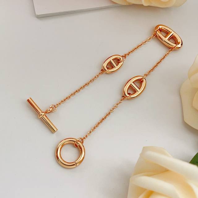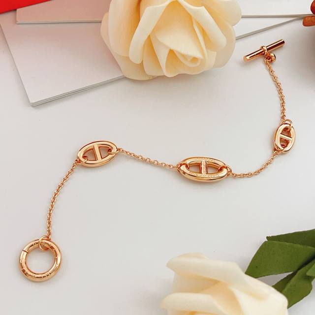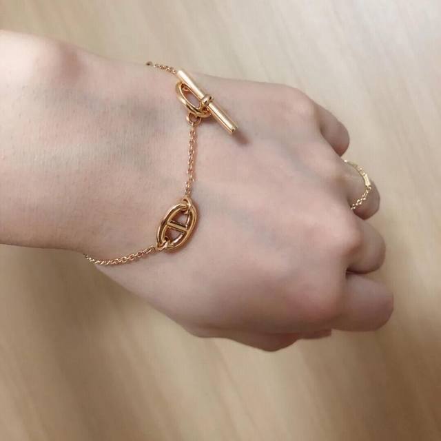 / He Mes最新款爱马仕玫瑰金色光面猪鼻子手链 一致Zp黄铜材质,非常的上镜设计很特别值得入手高级手工坊系列 DDD