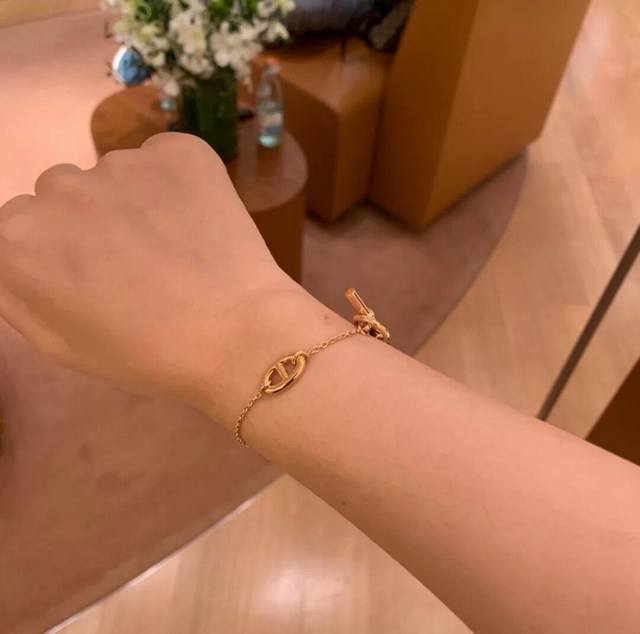 He Mes最新款爱马仕玫瑰金色光面猪鼻子手链 一致Zp黄铜材质,非常的上镜设计很特别值得入手高级手工坊系列 DDD
