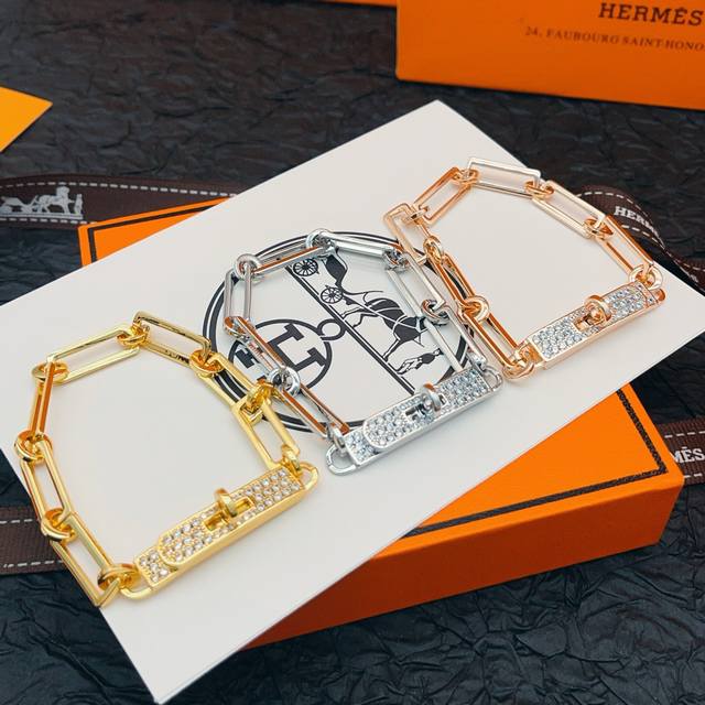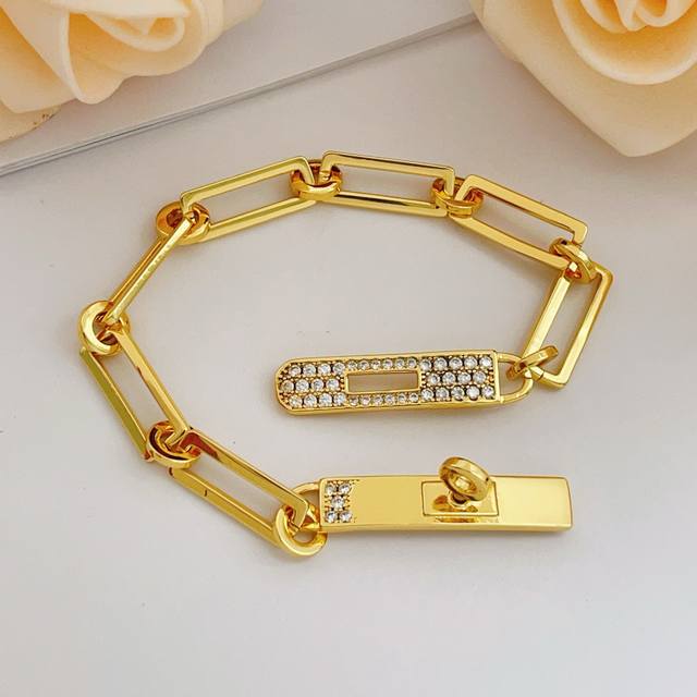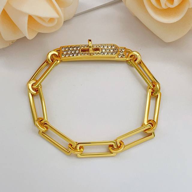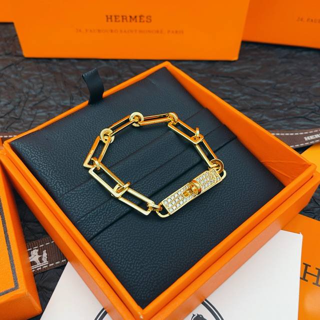 He Mes最新款爱马仕金色镶钻猪鼻子手链 一致Zp黄铜材质,非常的上镜设计很特别值得入手高级手工坊系列 DDD