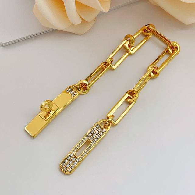 / He Mes最新款爱马仕金色镶钻猪鼻子手链 一致Zp黄铜材质,非常的上镜设计很特别值得入手高级手工坊系列 DDD