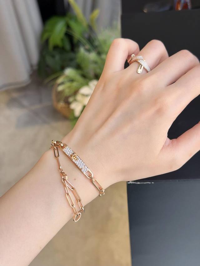 玫瑰金 He Mes最新款爱马仕圆形猪鼻子镶钻玫瑰金色手链 一致Zp黄铜材质,非常的上镜设计很特别值得入手高级手工坊系列