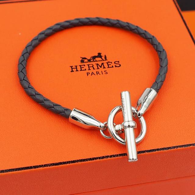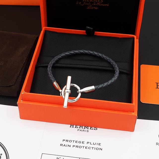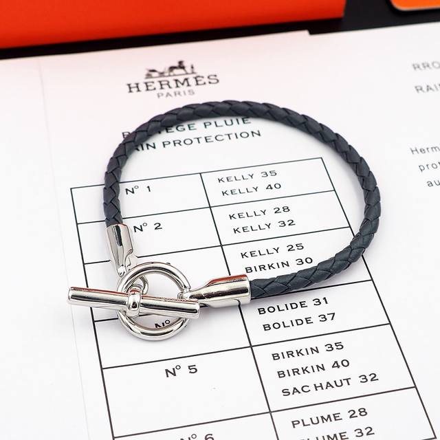 / Hermes 爱马仕经典锁扣Glenan和Jumbo推出经重新演绎的版本,搭配缤纷多彩的皮革和真丝编绳。Swift小牛皮编织手镯,镀金Glenan锁扣。