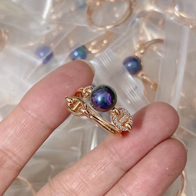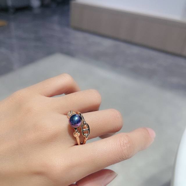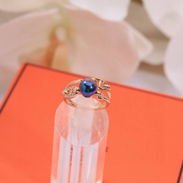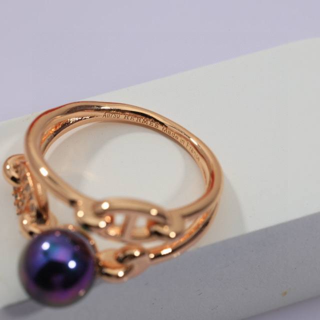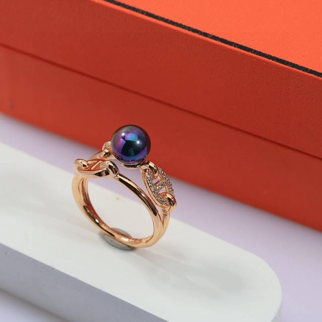 天然淡水珍珠爱马仕经典 高端大气上档次 猪鼻子 戒指最容易吸引人的经典 猪鼻子 戒指 款 V金材质 18K金电镀 带Logo 玫瑰金 超 Nice码数 6-7-8# 爱马仕珍珠戒指