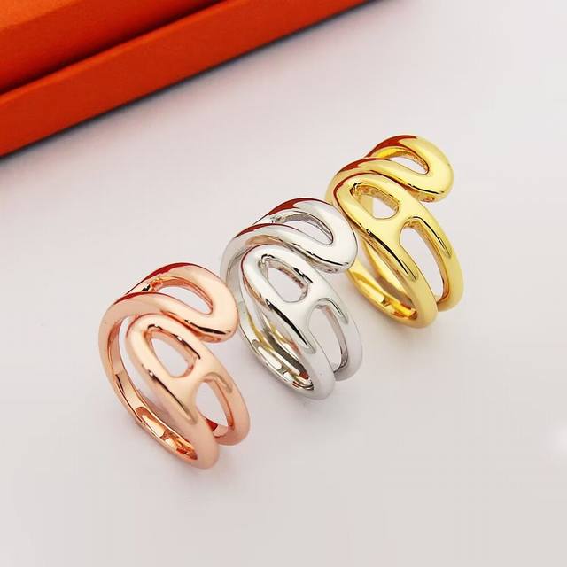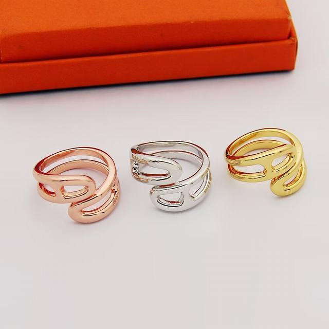 宽面H戒指爱马仕戒指经典猪鼻子戒指 高端大气上档次 超 Nice三色开口均