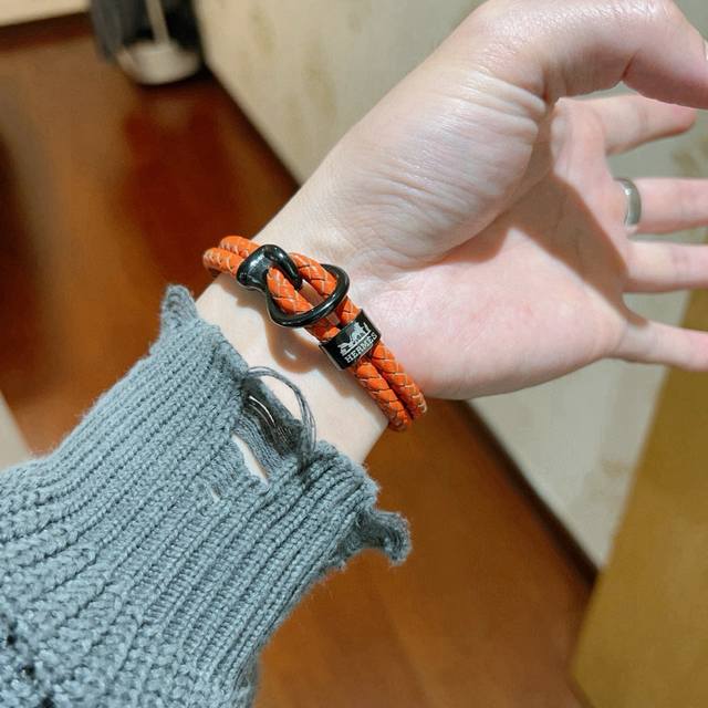 / 新品发售 爱马仕手绳手环最新款纯手工头层牛皮材质档次更高明星同款H系列系列经典款系列手链手绳 手绳尺寸:19.5 22厘米 细节对版做旧处理 非市面亮面版型 这