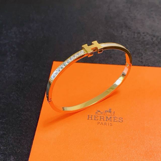 / 新品高品质爱马仕Hermes手镯H镶钻白贝母厚实精工版 窄版从上市以来一直深受Mm喜爱每一种颜色都有它独一无二的光彩!上手效果非常好看!最细小的一款!比普通款更