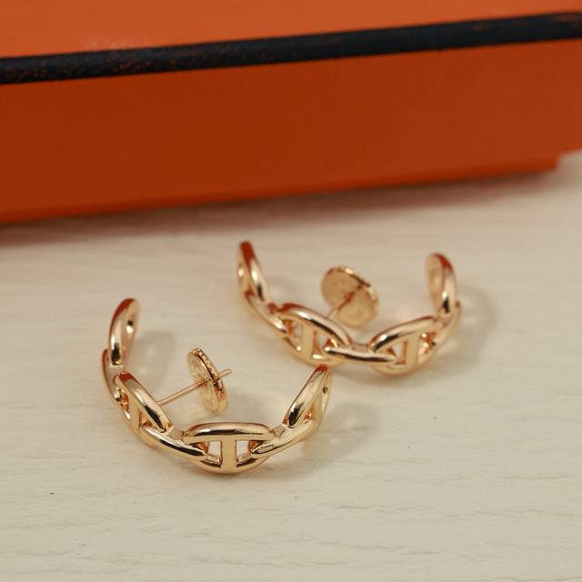 精工版本 猪鼻子耳钉 爱马仕火猪鼻子耳钉 潮爆大街,时尚!S925银针+亚金材质 细腻打磨,细节完美!原版飞碟耳塞