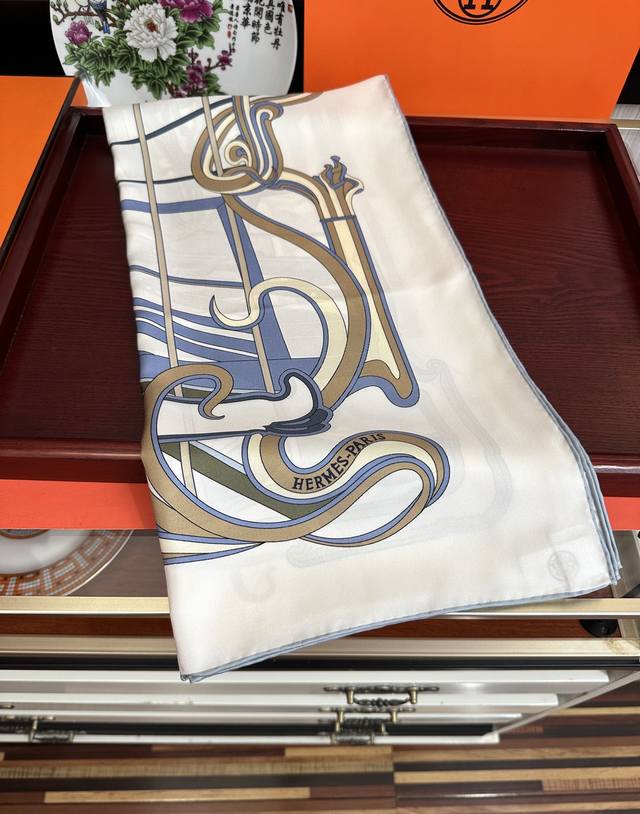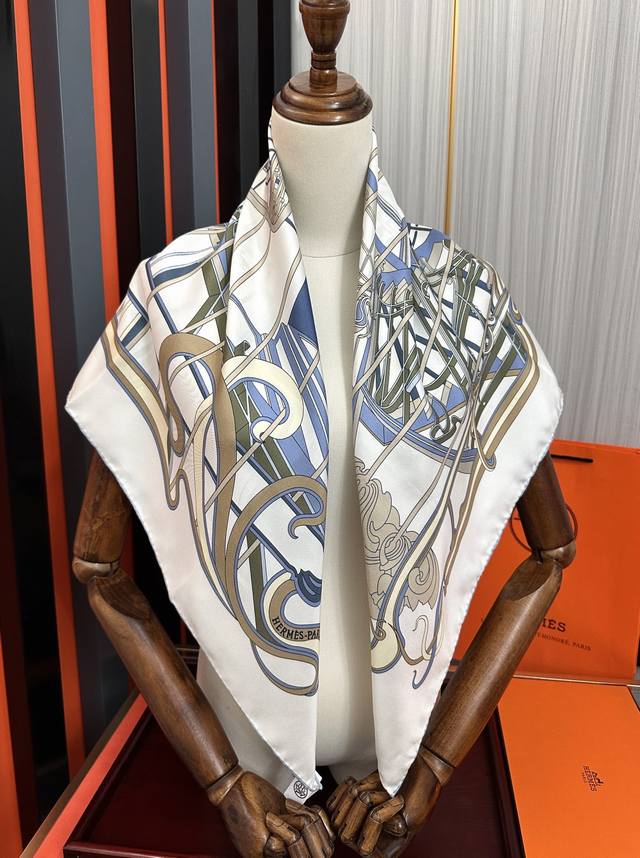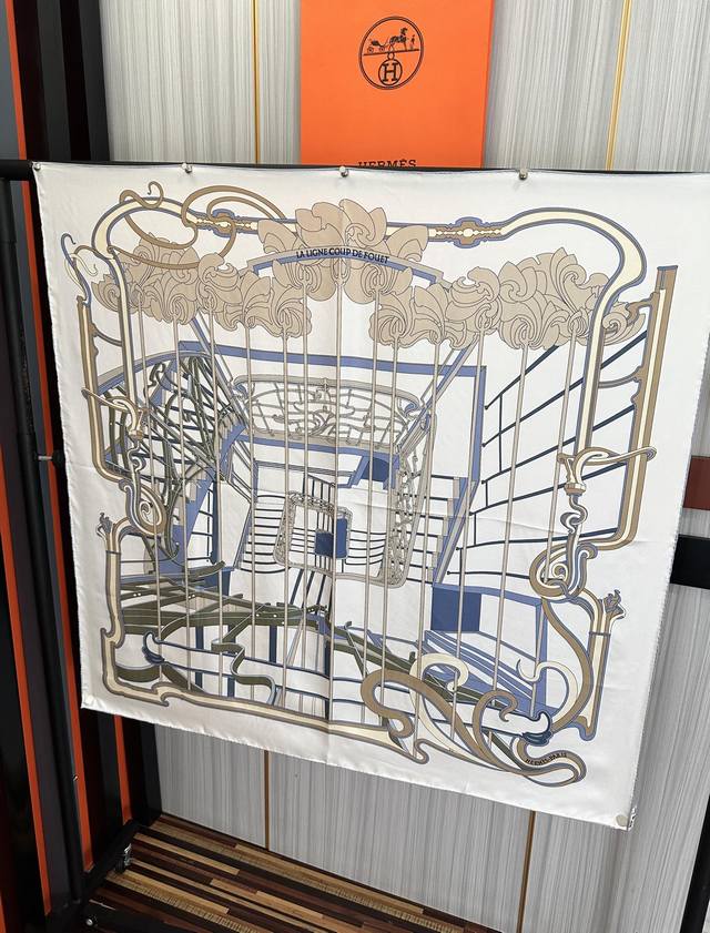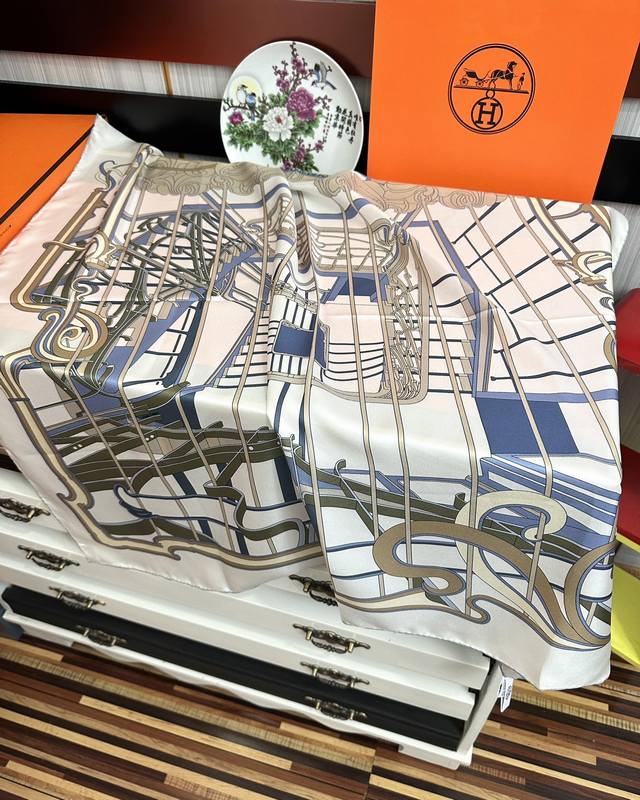 新款爱马仕 马鞭起舞线条版 90方巾 创作渊源在比利时的圣吉尔区[嘴唇]建筑师维克多霍塔 Horta, 1861-1947 亲自设计并建造了他的整栋居所和工作室 设计师皮埃尔马里 Pierre Marie 参观了这座建筑 发现其中运用了新艺术风格特有的“鞭索曲线” 并以此为灵感创作出这款丝巾。图案采用俯视角度 旋转楼梯饰有阿拉伯花纹造型与古老的马赛克花卉图案和彩绘玻璃窗相得益彰 手扶栏杆,拾级而下,走进超现实的奇幻世界 尺寸:90X90 材质:真丝 3色