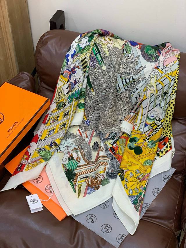 / 羊绒新款买了都说好看推荐爱马仕双面同色羊绒方巾 动物之城双面同色140 ,顶级工艺超值爱马仕专柜爆款立体呈现图案纹路实物档次极高特殊工艺高端研发惊艳问世特殊尖端