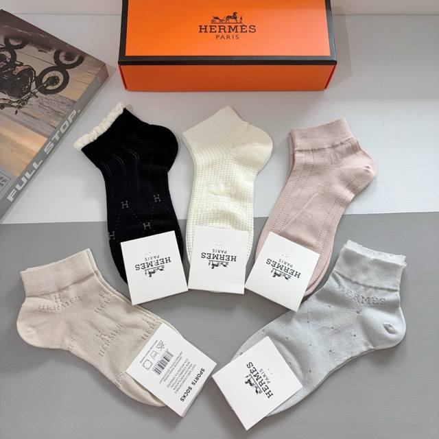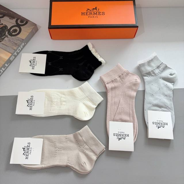 / 配包装 一盒5双 Hermes爱马仕 高版本竹棉袜子超级柔软短袜潮人必不能少的专柜代购品质 短款袜子 ,搭配起来超高逼格 推荐推荐推荐~~必入时髦小单品!!!