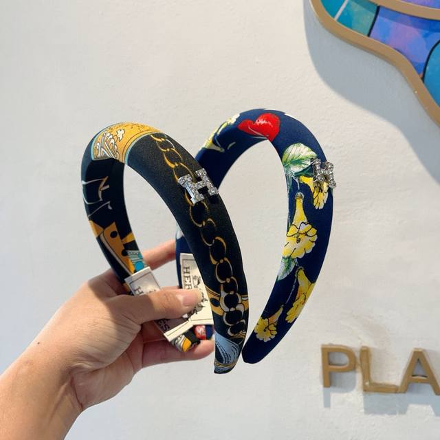 / 配包装 Hermes 爱马仕 火爆定制款涂鸦发箍,网红同款 进口面料, 出口订单、细节全部实拍!特制面料非常显质感!