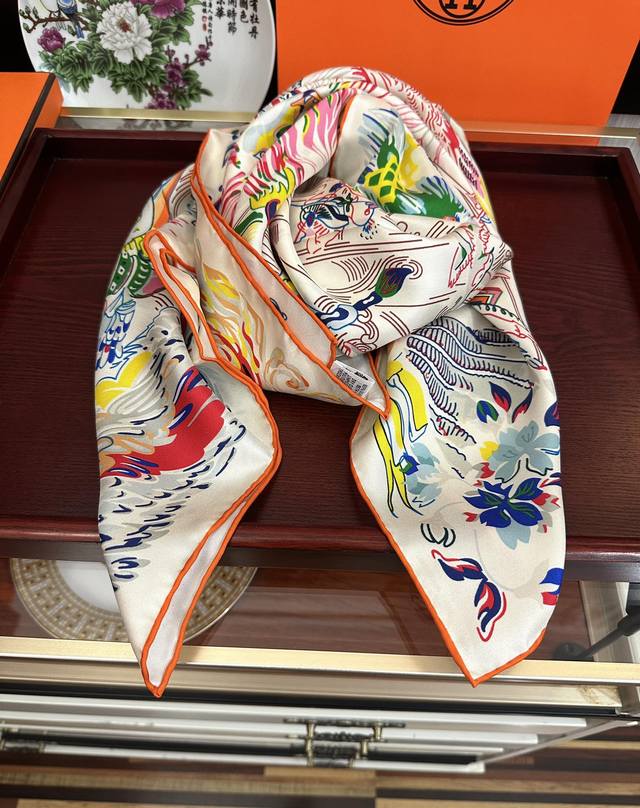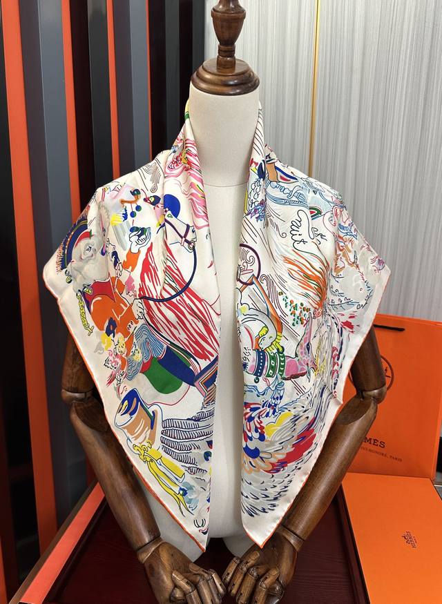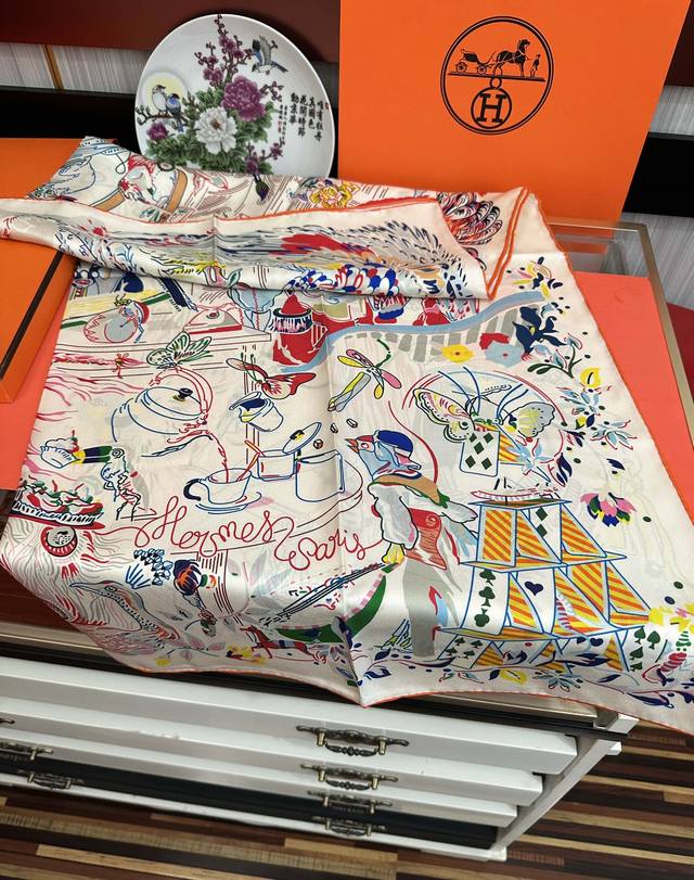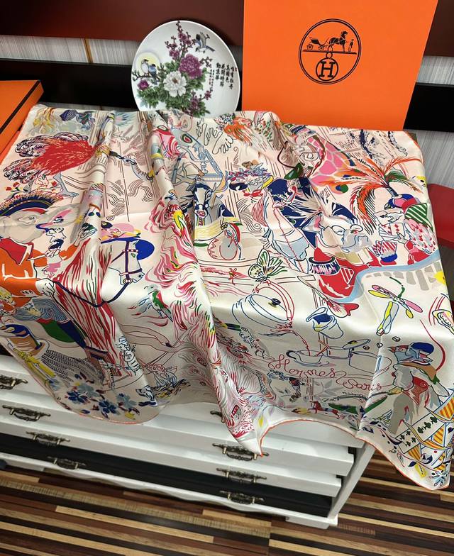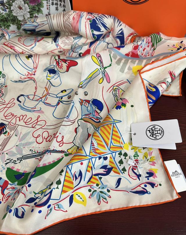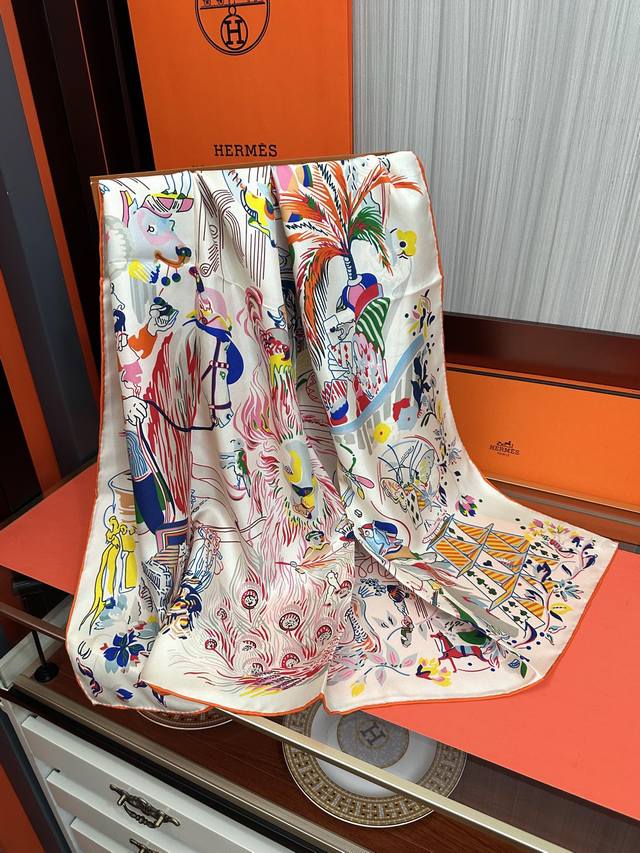 高版本 爱马仕 官网同步 埃米尔奇幻之夜 设计师:Virginie 夜幕降临在圣奥诺雷街 Rue Du Faubourg Saint-Honoré 办公室的门一关上 沉睡的动物们就像变魔术一样在五颜六色的灯笼照耀下[微笑]疯狂地游行起来。看书、喝茶还是玩纸牌 小狗喜欢帽子 鸵鸟喜欢手提包。鹦鹉围着围巾,小鹿则在中间看书[嘴唇]整个夜晚 在羽毛和鲜花的天空下,这是一场壮观的焰火表演,充满了欢乐和色彩 尺寸:90X90材质:真丝