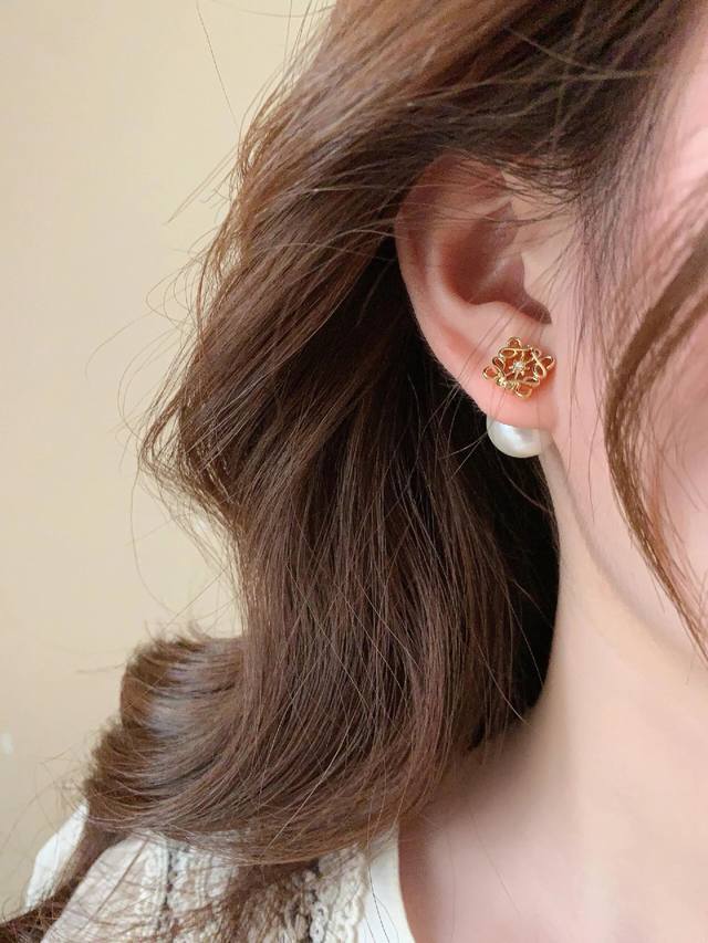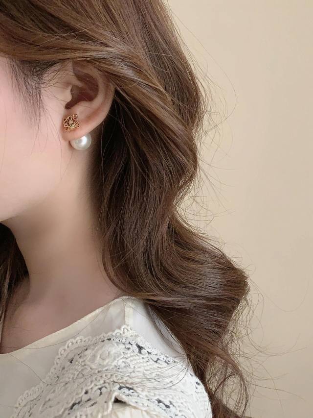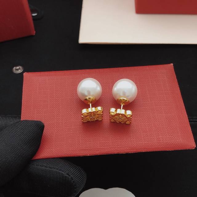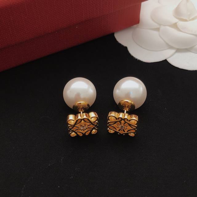 罗意威*最新款珍珠耳钉 一致Zp黄铜材质