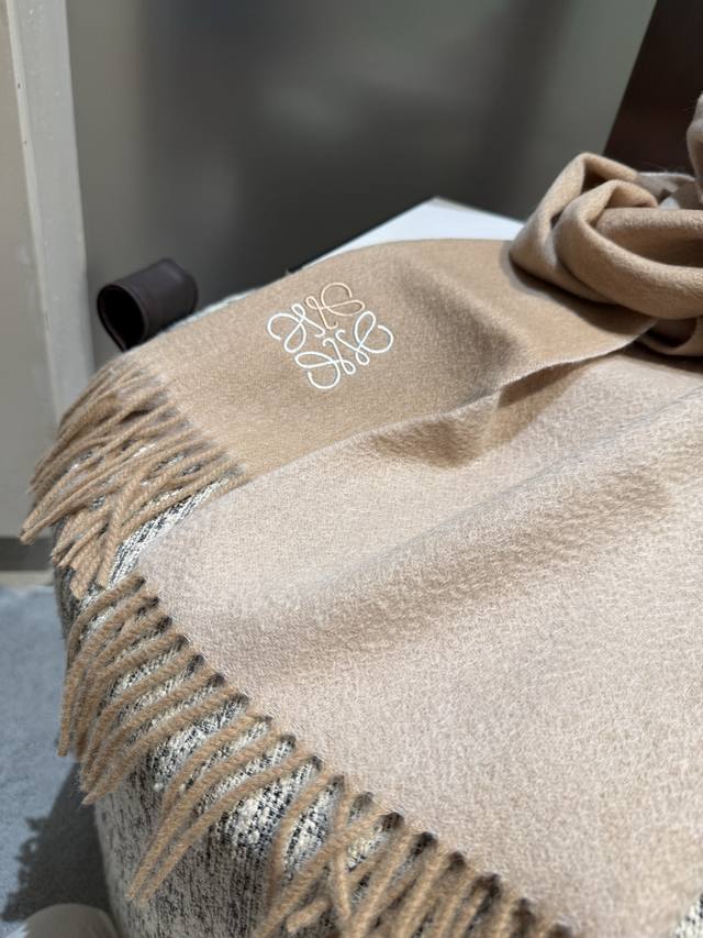 罗意威 年最新款,Khaki Green奶茶驼双色羊毛提花毛毯披肩,饰有重复 Anagram 图案,对比色 Loewe L...