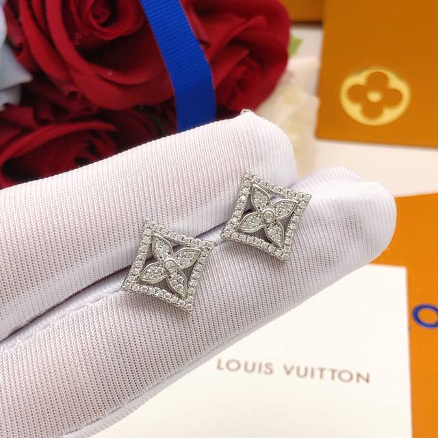 编号Led0034 Lv最新款老花耳钉银色镶钻菱形 一致Zp黄铜材质