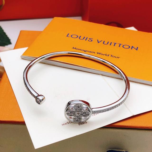 Lv*最新款银色镶钻手镯 一致Zp黄铜材质