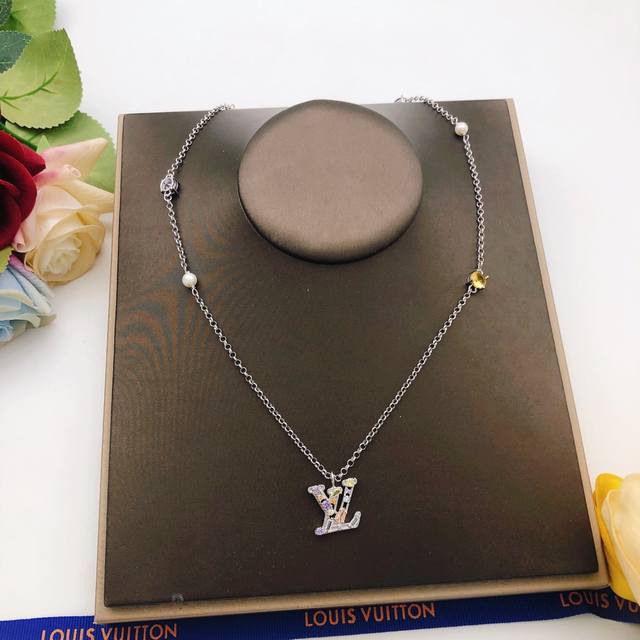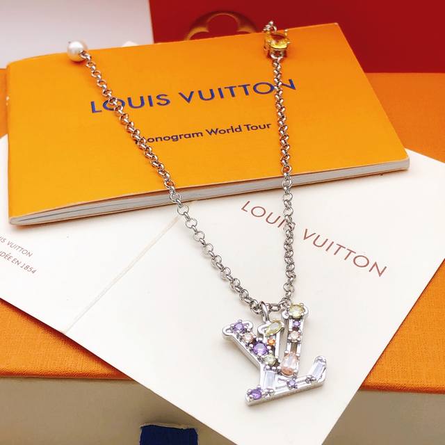 Lv*最新款彩钻项链 一致Zp黄铜材质
