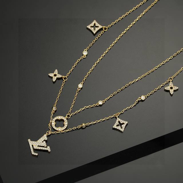 / 路易威登双层多元素项链 秉承精湛匠艺 抛光色泽成就经典 Lv 字母的自然化身,流露品牌格调 明星同款 经典百搭 项链