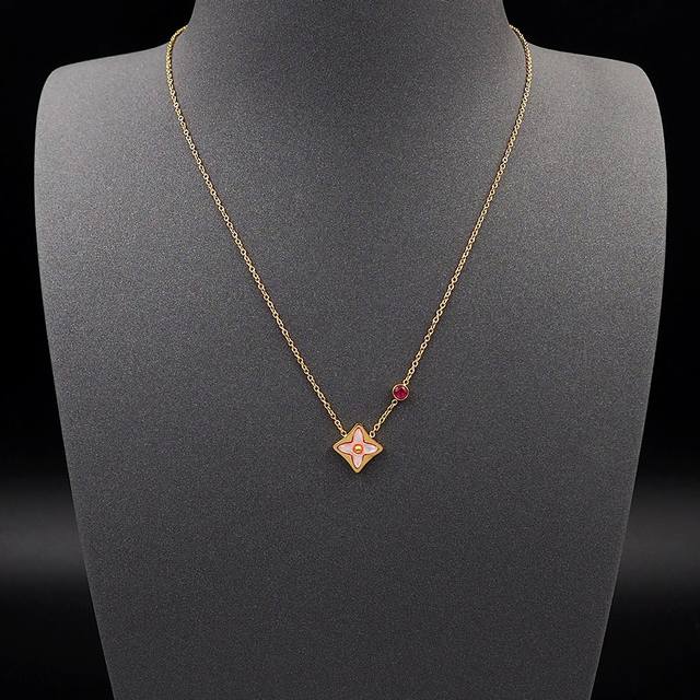 / 驴家Color Blossom Bb 项链推出情人节限量版设计,以华美格调点 亮各式场合。雕琢 Monogram 花卉,莹泽贝壳塑造圆 润花瓣,与红宝石共同呈现