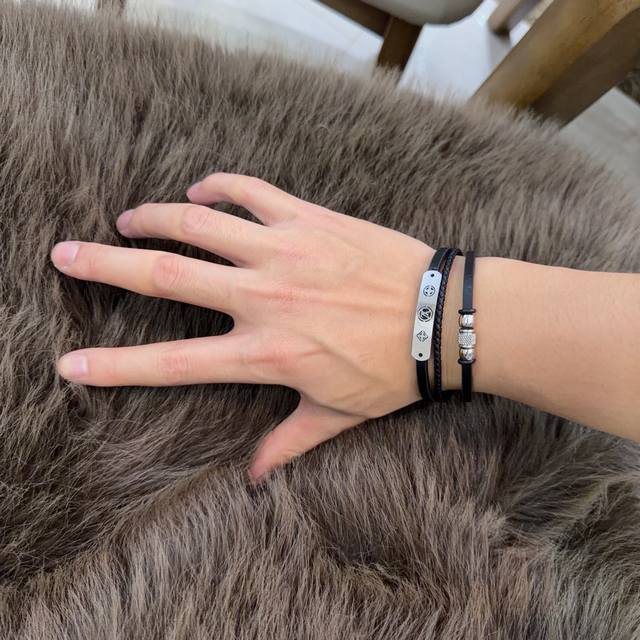 / 高品质Lv路易威登牛皮手绳手链原单货专柜新款开模复古潮流时尚必备 男女均可佩戴 情侣款同款 摇滚朋克泰银风格 复古元素蓝色低调奢华 潮流百搭 官网同款手镯最新款