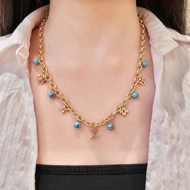 Louisvuitton以 经典花纹图案设计 双花 款设计方式吊坠Lv品牌标志设计,经典标志理念、演绎典雅也流行项链.时尚潮流百搭款.非常抢眼显白、专柜同款 黄铜材质.真金电镀工艺制作而成 .