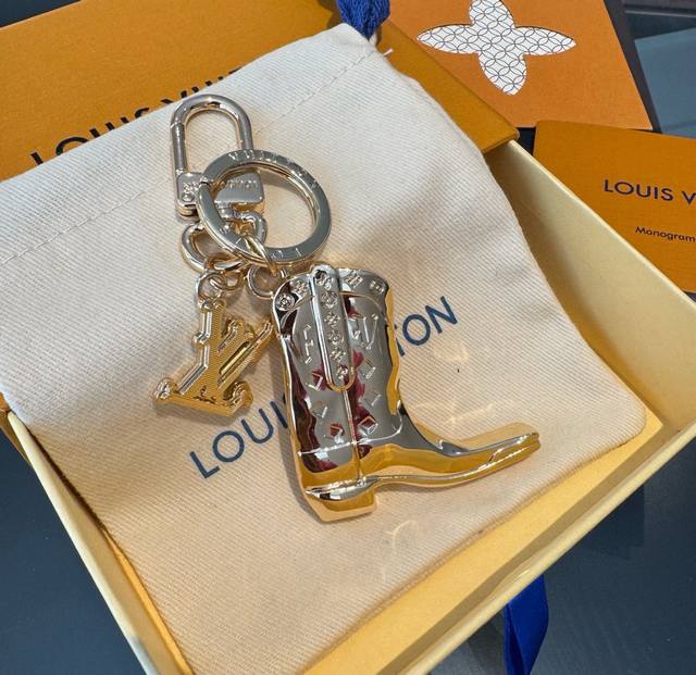 / Lv钥匙扣 靴子挂件车钥匙挂饰,品牌经典标识巧妙嵌入链环之间。Lv字母装饰于一端优雅垂坠,弹簧扣实现轻松固定,为裤装或手袋注入潮流锋芒。
