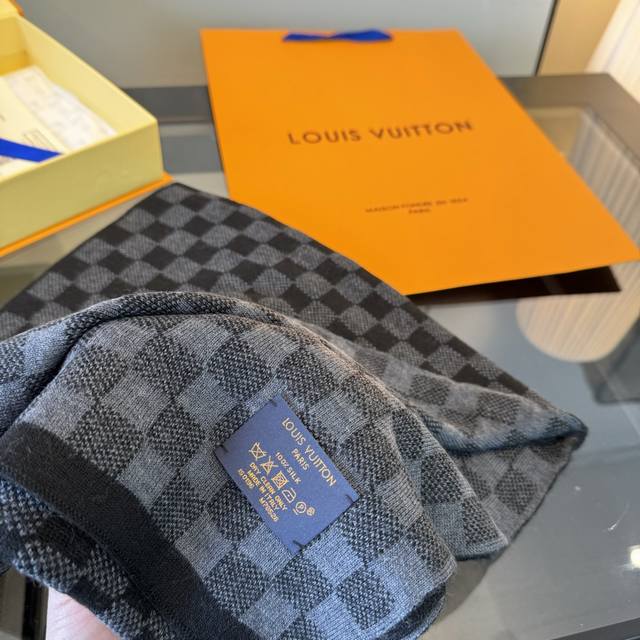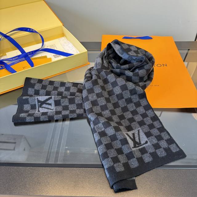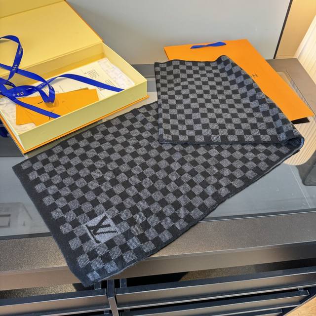棋盘格黑色超级爆款重磅回归经典男款到货Lv男款 petit Damier男士羊毛羊绒长巾 经典方格,高贵奢华,男士冬日无论配大衣,休闲外套,羊毛衫首选 高品质,
