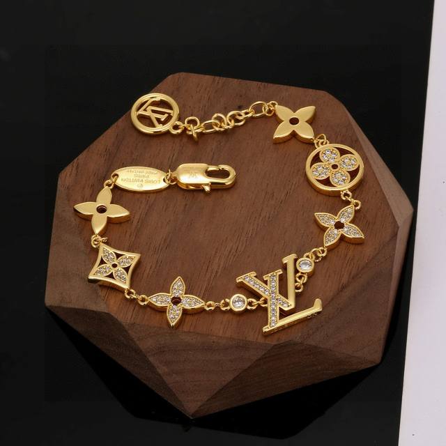 / 重工工艺,路易威登字母手链秉承精湛匠艺 抛光色泽成就经典 Lv 字母的自然化身,流露品牌格调 明星同款 经典百搭 手链