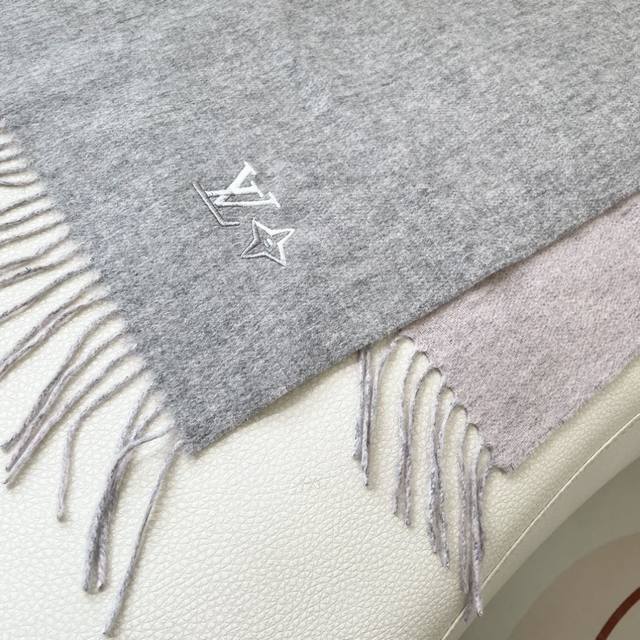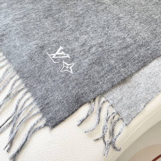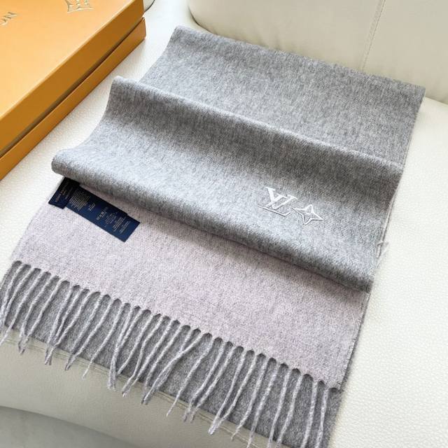 Lv 2.0 围巾为柔软山羊绒标注 Monogram 花卉和 Lv...