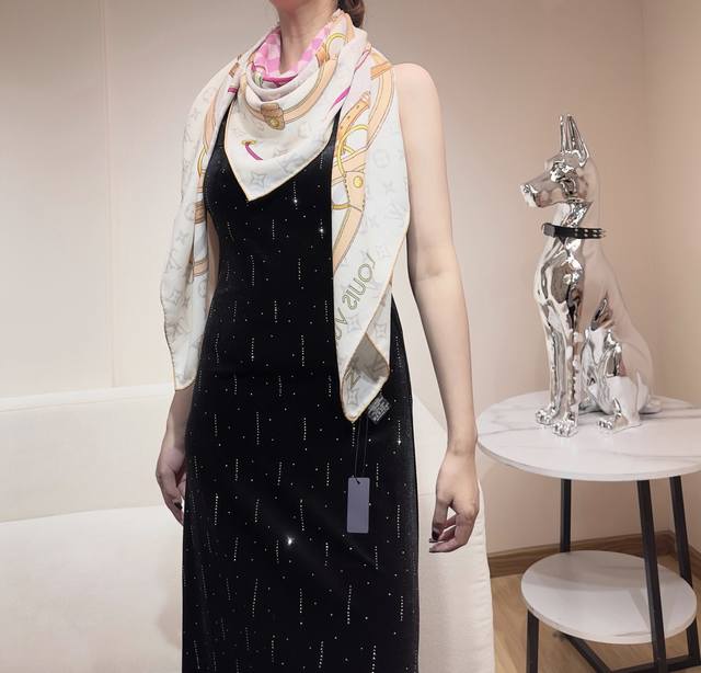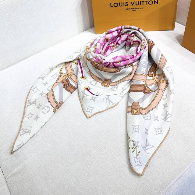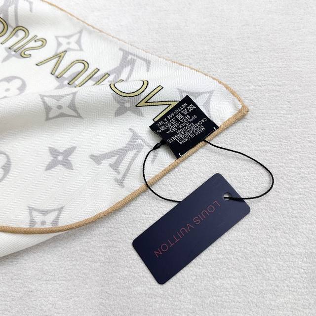 方巾 Lv披肩经典金丝搭配丝毛混纺的华美质感,与成衣和配饰系列单品搭配相宜。 尺寸:140 X 140Cm 面料: 57%羊毛,43%真丝