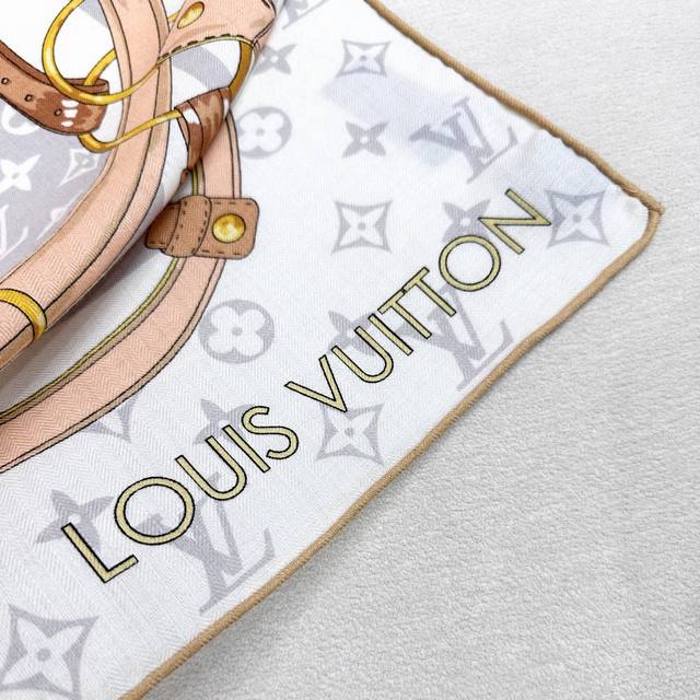 Flower And Straps 以瞩目笔触彰显雅致风范,依托丝印工艺描绘 Monogram 花卉、肩带、挂锁和行李牌,令路易威登的美学图腾迎来摩登洗礼。Monogram 与 Damier 图案再添品牌底蕴。 DDD 尺寸:135×135厘米 DDD 成份:30 真丝70羊绒 DDD