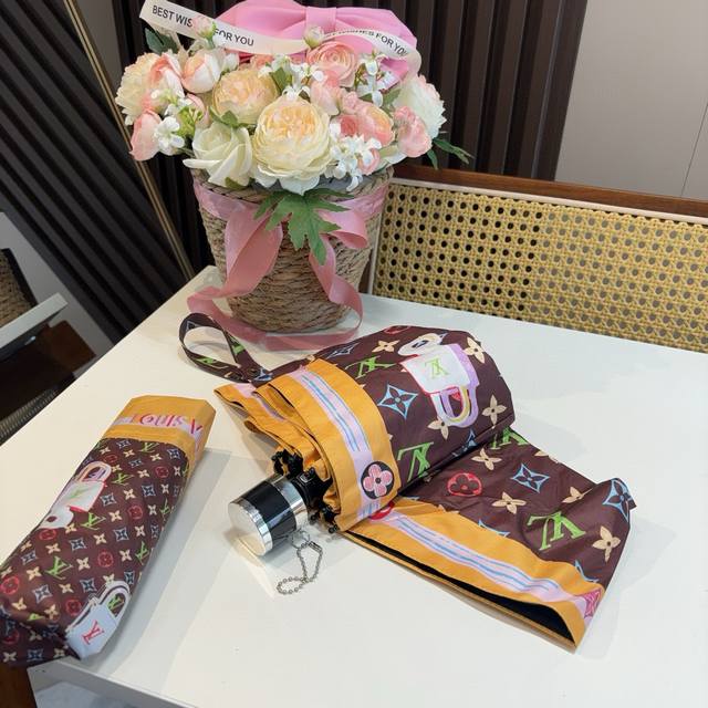 Louis Vuitton 路易威登 2025新款 经典字母 三折自动折叠晴雨伞 新涂层技术深色伞面 拥有令人惊喜的遮光效果!2色