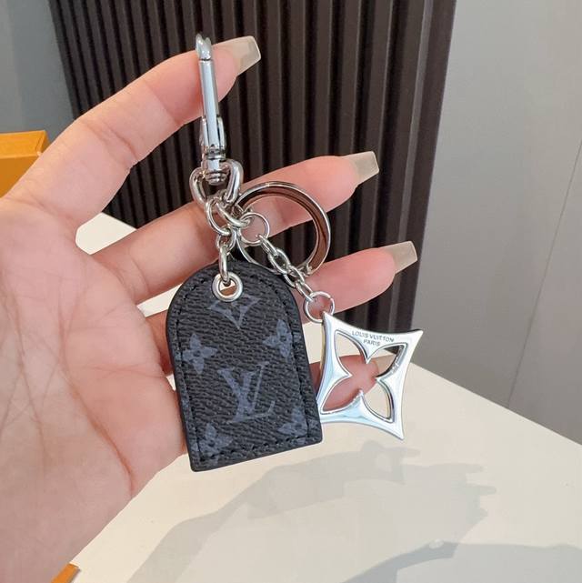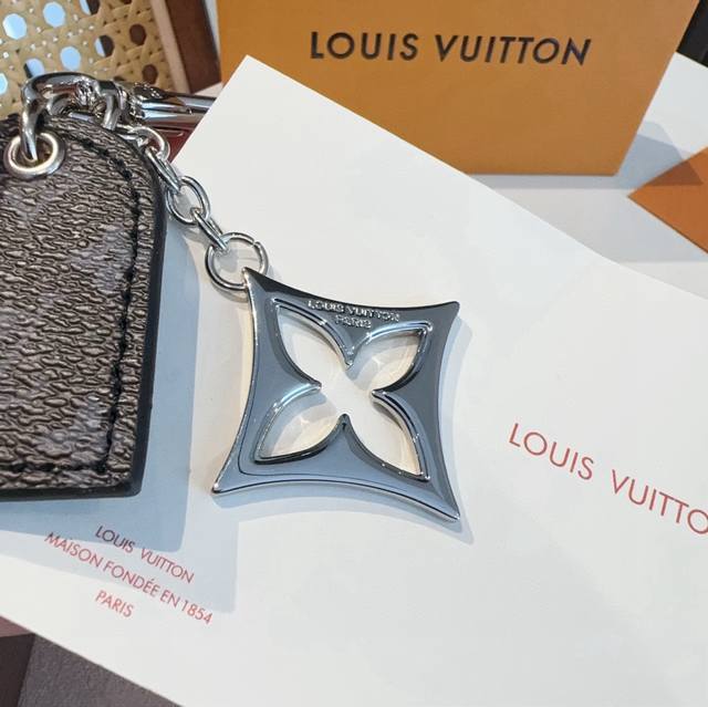 / Lv经典老花钥匙扣 包饰与钥匙扣挂件Lv Cherished Tab 钥匙扣结合 Monogram 帆布标签和牛皮革细节,搭配 Lv 字母四叶草金属挂饰,共同悬