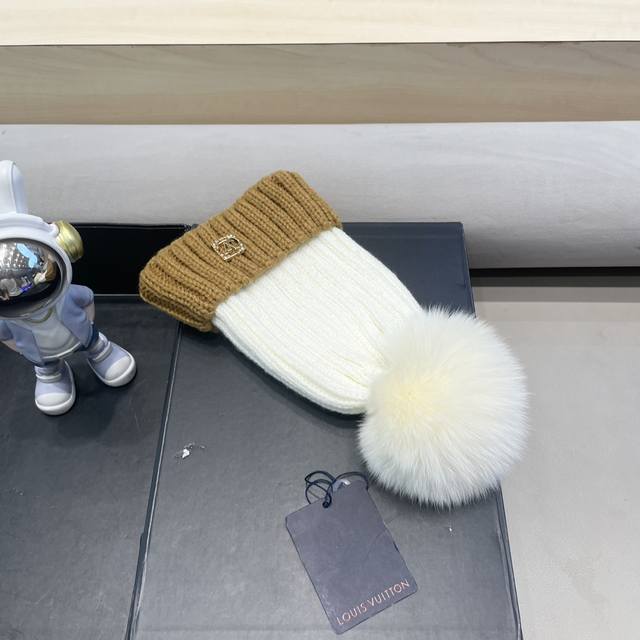 / Lv路易威登韩版Ins秋冬季真狐狸毛球毛线帽子女百搭时尚亲子针织帽潮