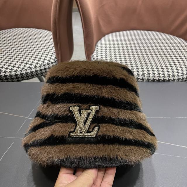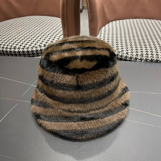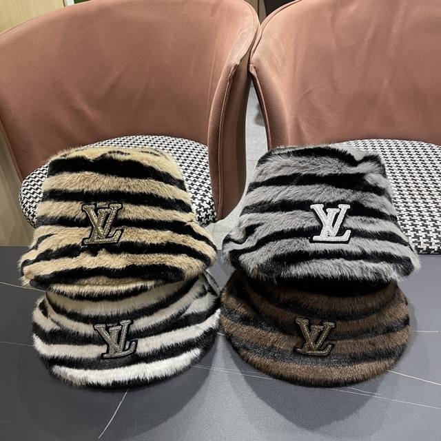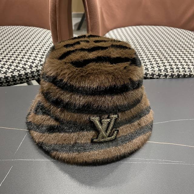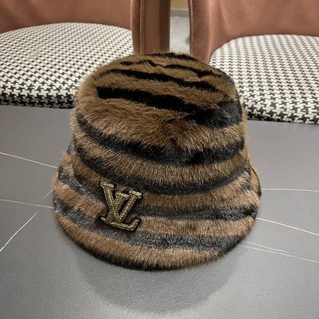 / Lv路易威登 斑马纹毛绒绒复古渔夫帽秋冬季加厚 保暖帽子女韩版潮时尚百搭盆帽