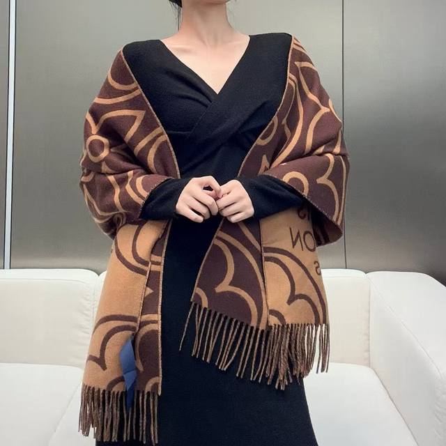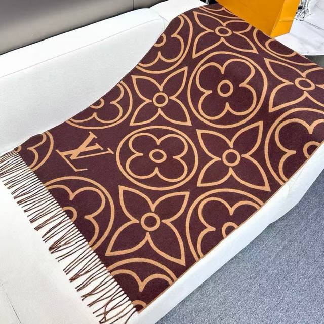Lv In Bloom 围巾以宽幅尺寸呈现大号 Monogram 花卉,讲述繁复主义的视觉理念。毛绒混纺于冬日围裹暖意。可双面佩戴。