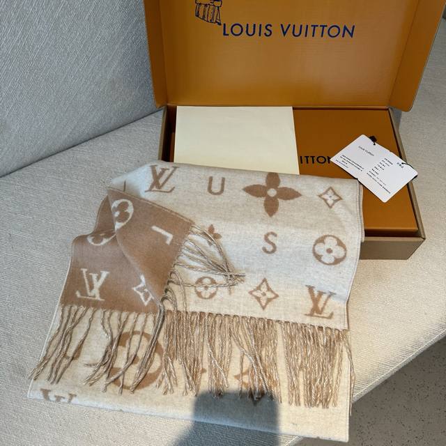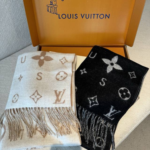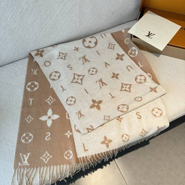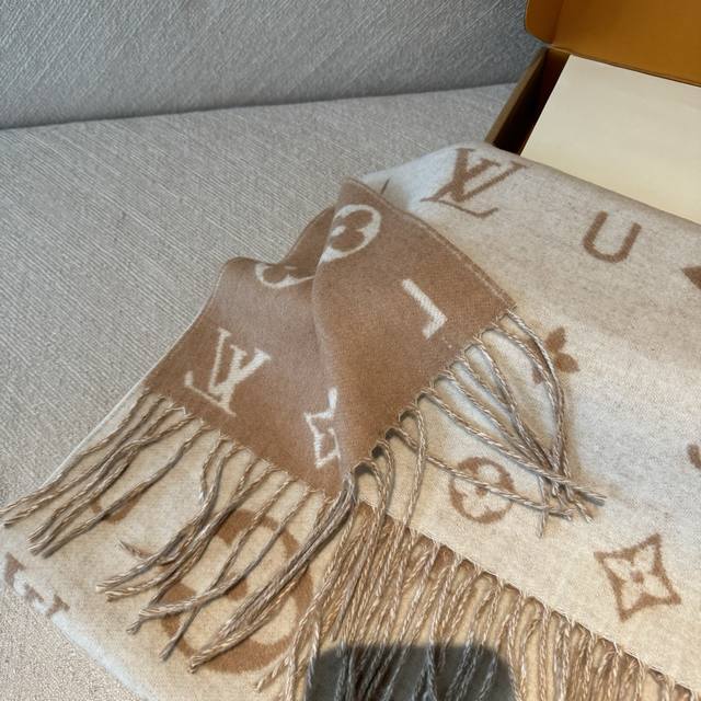 / Reykjavik 2.0 围巾为柔软山羊绒标注 Monogram 花卉和 Lv 字母,其间点缀品牌名称的单一字母,以摩登风姿焕新经典。加长设计适宜环绕颈部,亦