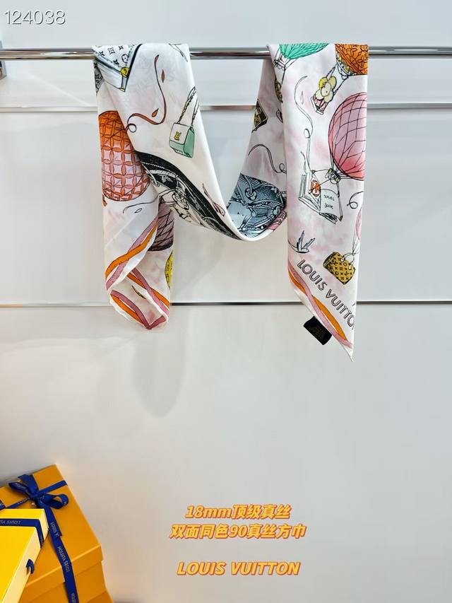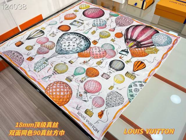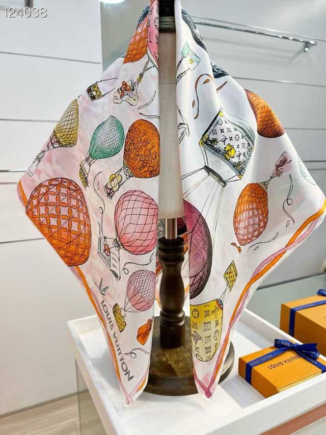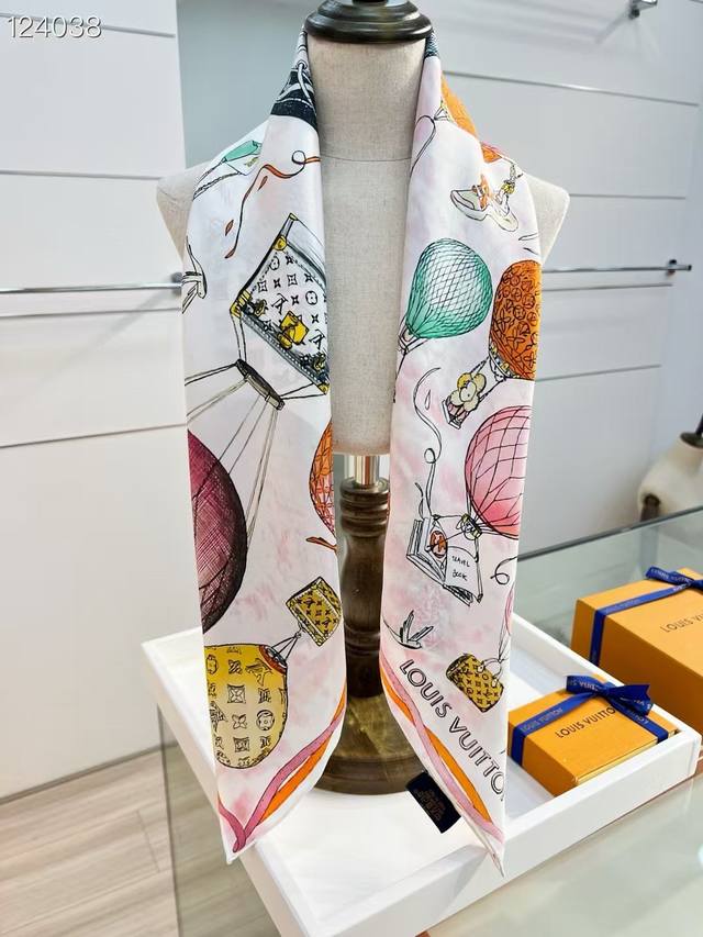 本款桑蚕丝方巾全新加入 Up And Away 系列,致意路易威登的旅行传承。丝印工艺刻画丰富细节,描绘 Monogram 热气球载着路易威登手袋和行李箱升向天空之景,成就赠礼佳选。
