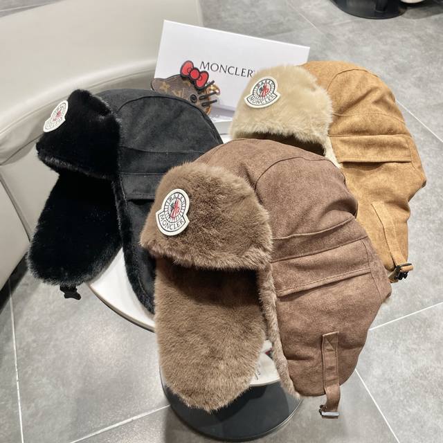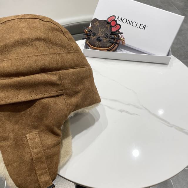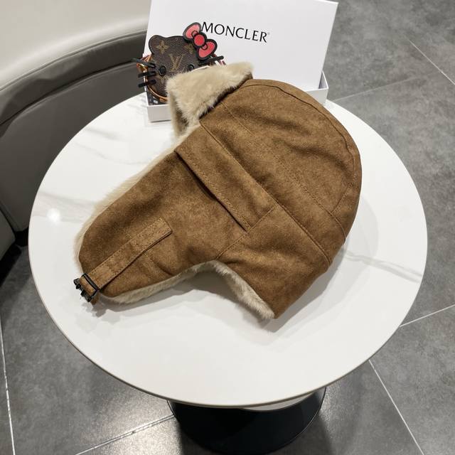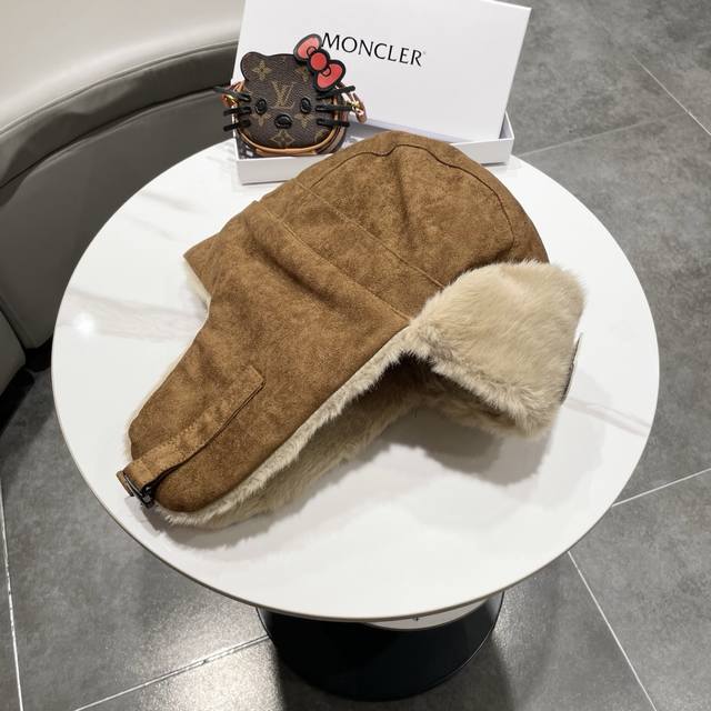/ 蒙口麂皮面料,经典水貂毛装饰。帽子采用优质麂皮面料,搭配水貂毛装饰,保暖舒适。均码设计,适合55-60Cm头围,男女通用。 帽子细节: - 经典水貂毛边,保暖舒