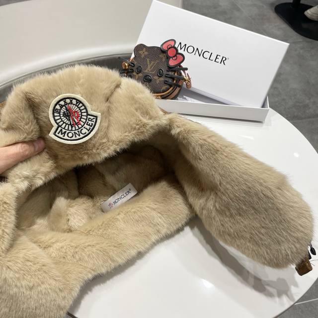 蒙口Moncler秋冬皮草帽子女獭兔护耳甜美渔夫帽保暖毛绒绒盆帽显脸小