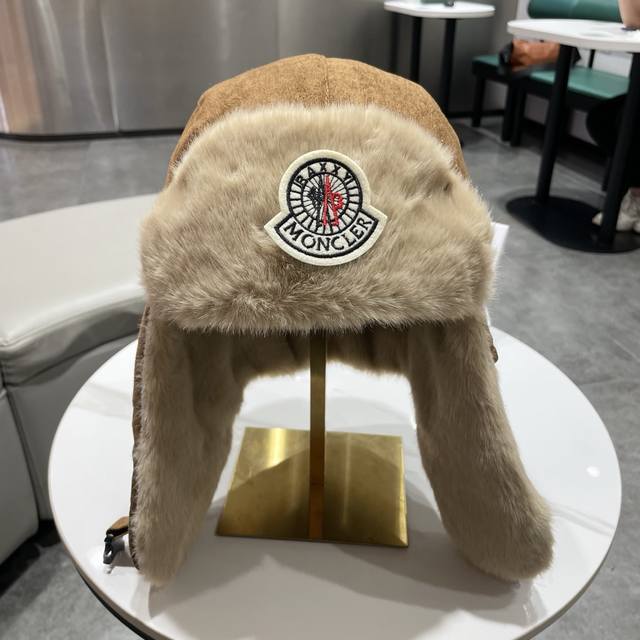 蒙口麂皮面料,经典水貂毛装饰。帽子采用优质麂皮面料,搭配水貂毛装饰,保暖舒适。均码设计,适合55-60Cm头围,男女通用。 帽子细节: - 经典水貂毛边,保暖舒