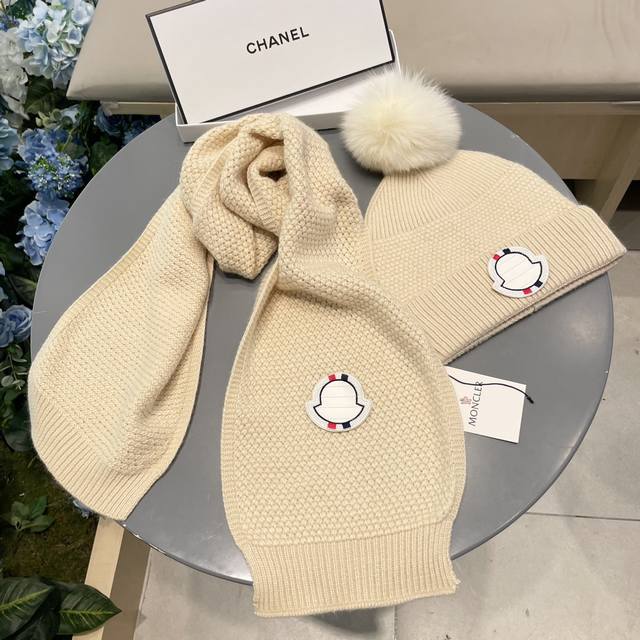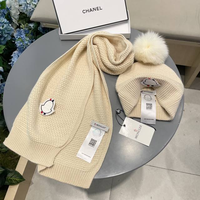 Moncler新款时尚潮流显脸小毛线帽秋冬毛绒保暖护耳套头针织帽