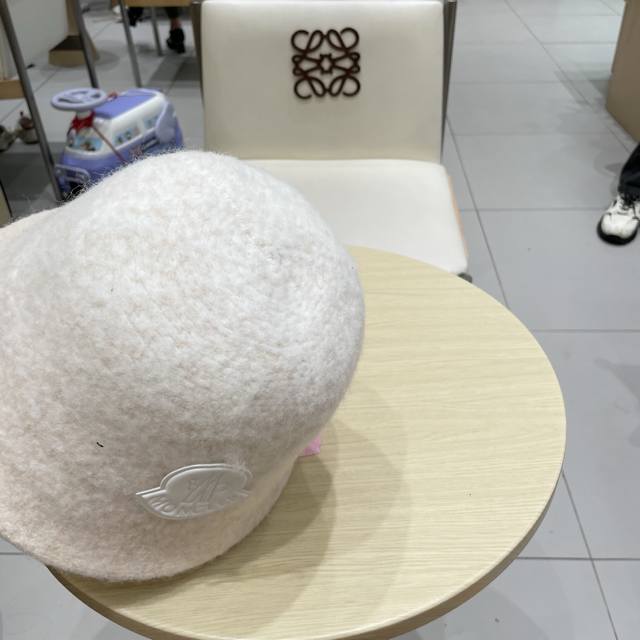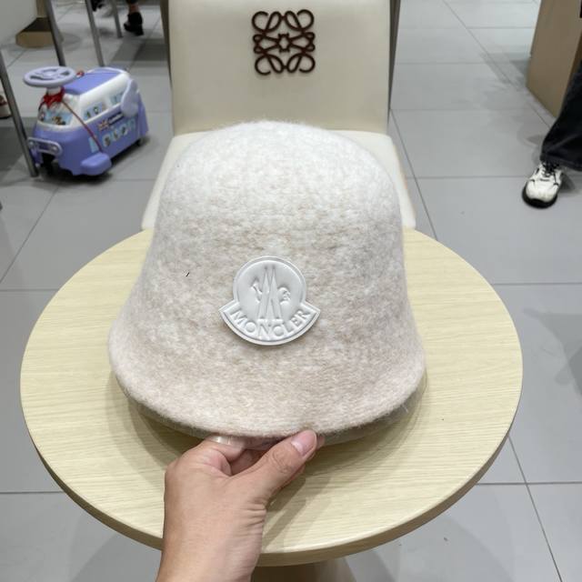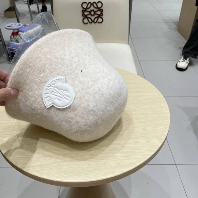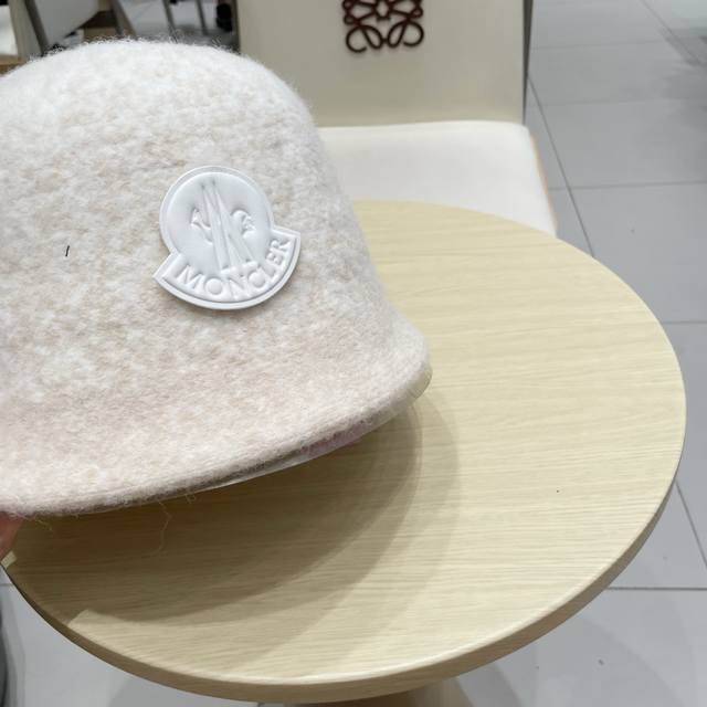 Moncler渔夫帽女秋冬季 新款纯色保暖防寒风显脸小旅游白色毛绒盆帽子