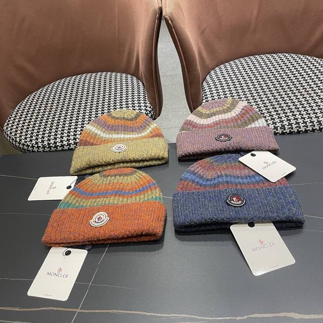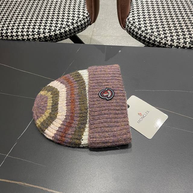 Moncler 蒙口 妖精的口袋撞色条纹毛线帽子女2025年 冬季新款软糯保暖护耳针织帽