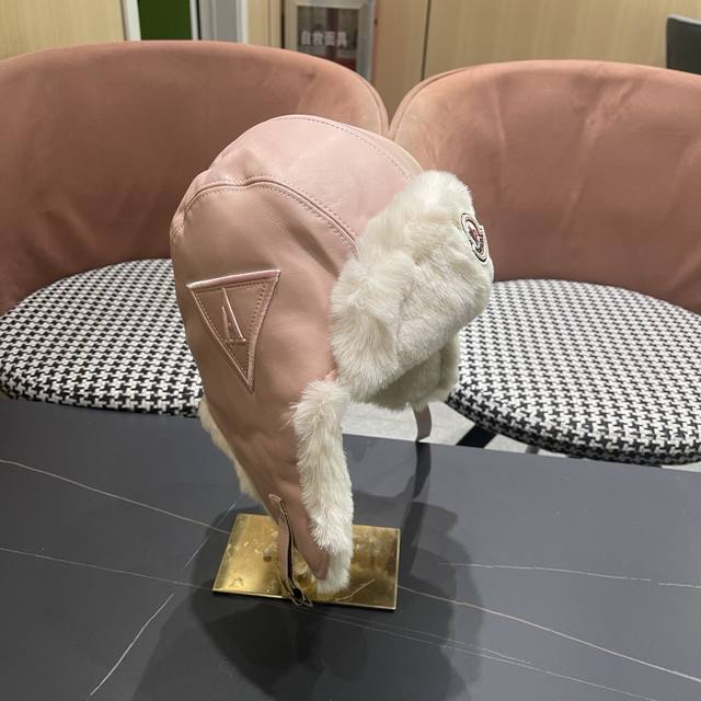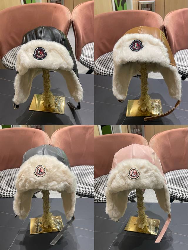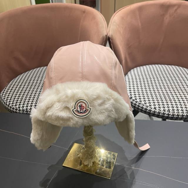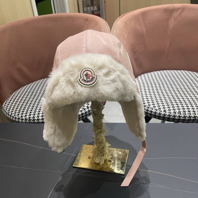/ Moncler 蒙口 锋帽女秋冬加厚保暖pu 皮质毛绒帽户外滑雪防寒护耳帽飞行帽潮男