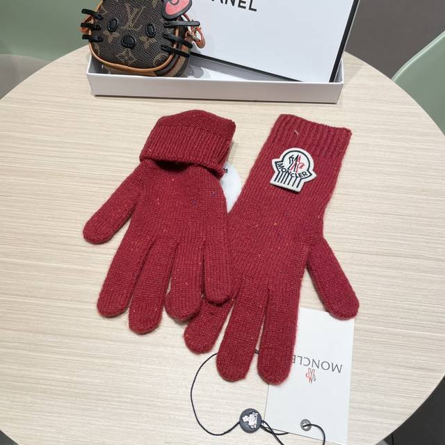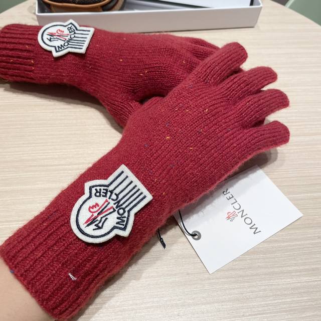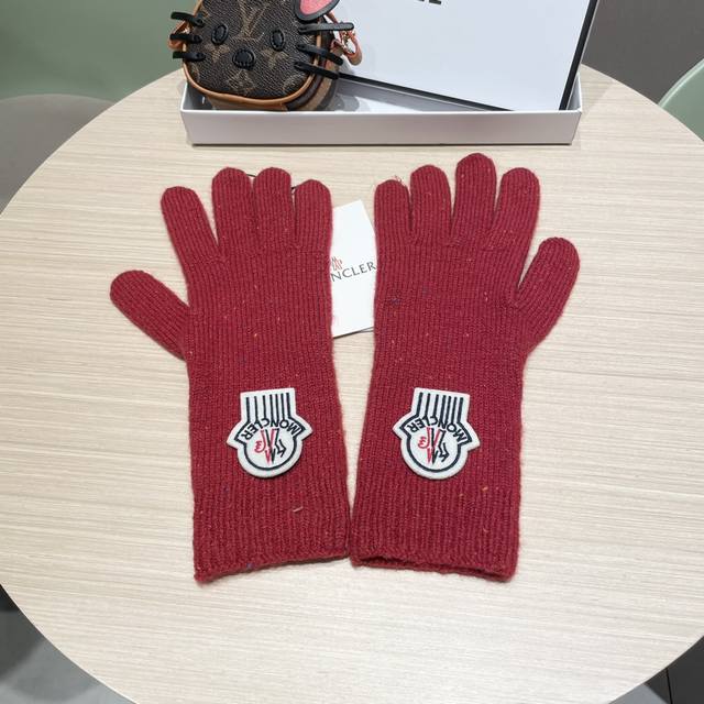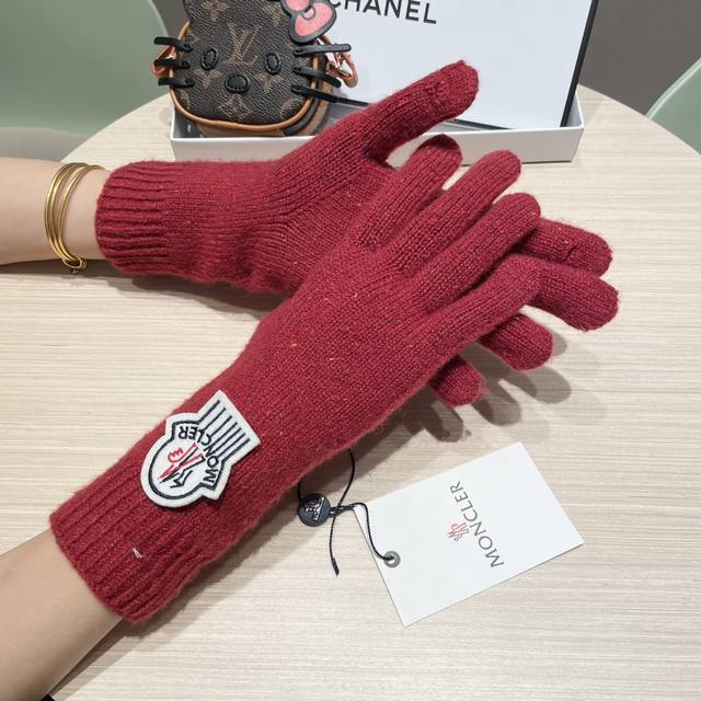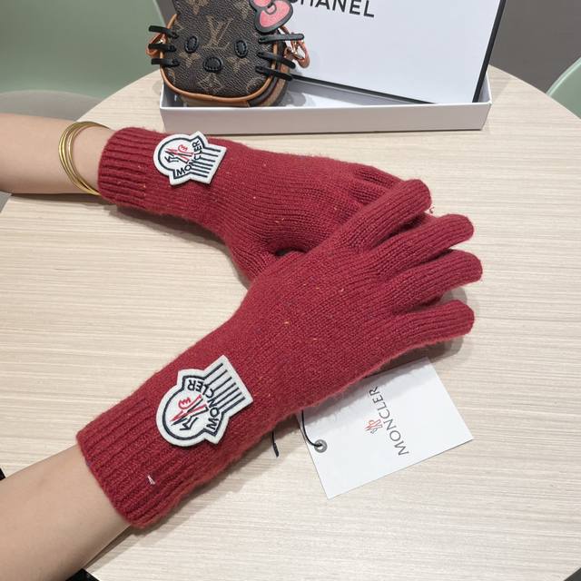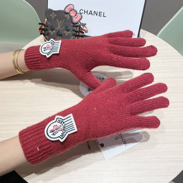 / Moncler2025新款韩版百搭雾蓝色针织手套女秋冬季保暖分指触屏加长手套潮