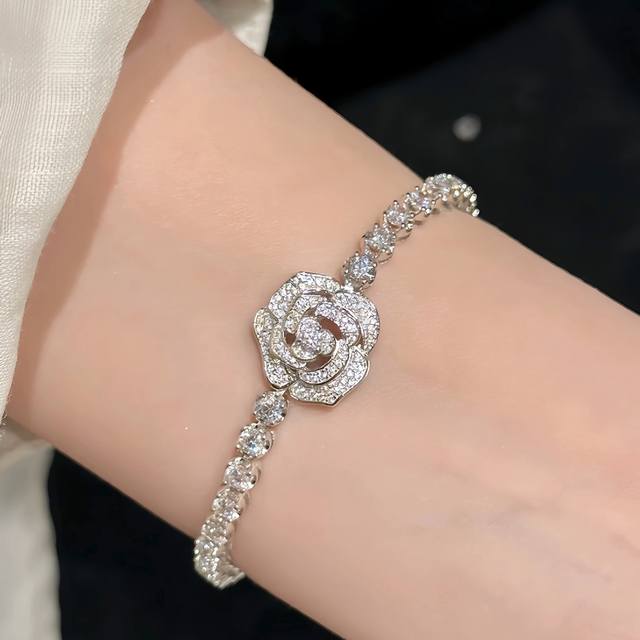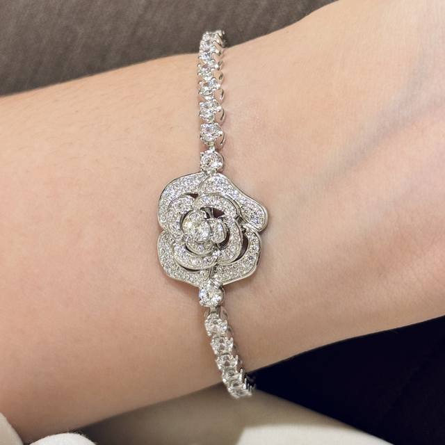 / A6738 大牌新款 高奢新品 满钻山茶花 排钻手链 通体S925纯银镶嵌厚金材质 非常非常非常的精美,不论外观,形状,刻字细节,背面分布,最大努力程度还原 称