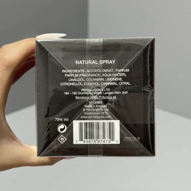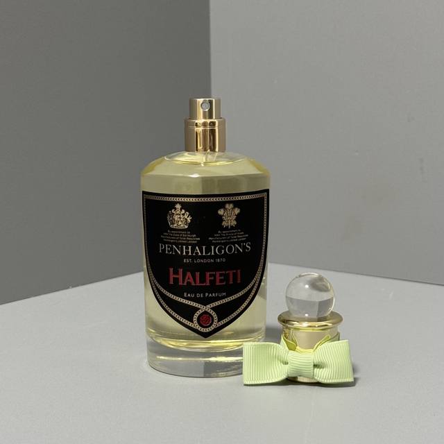潘海利根香水100Ml黑玫瑰沉香实拍现货penhaligon's Halfeti, 2015,品牌:潘海利根,调香师:Christian proven.属性:中性香,香调:木质东方调,前调:柏树藏红花小豆蔻艾蒿香柠檬葡萄柚,中调:玫瑰肉豆蔻茉莉,后调:沉香 乌木 皮革雪松檀香木琥珀零陵香豆香草麝香