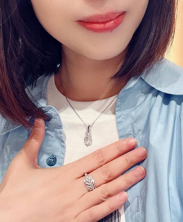/ 宝诗龙羽毛项链典经而现代,羽毛形装铺饰镶钻石,合契现今新的审美 亚金材质 厚金电镀 带Logo 宝诗龙项链 长度45Cm调节佩戴超美 DDD