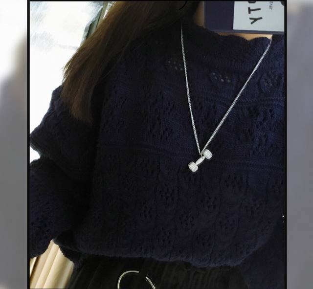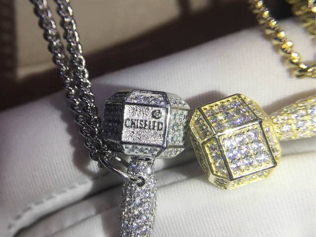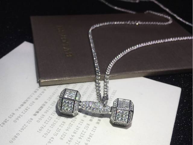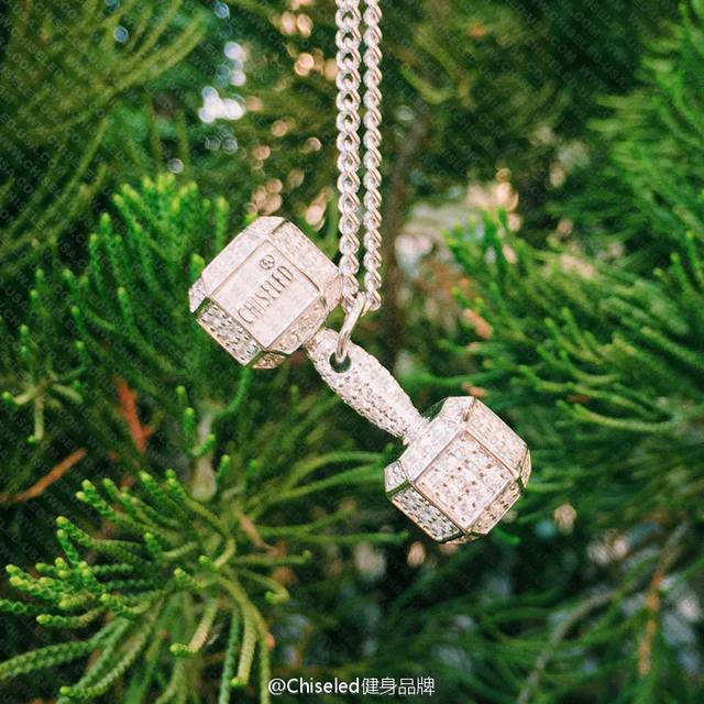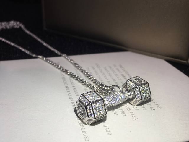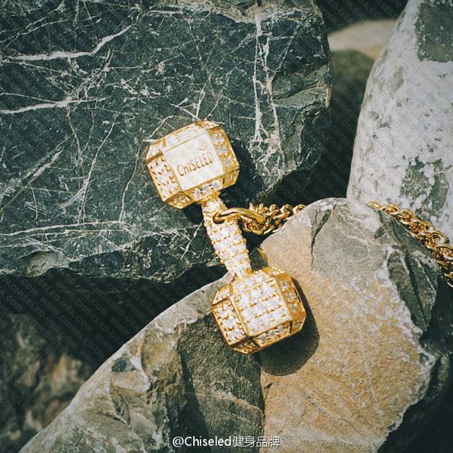 明星同款 Chiseled麒司欧美时尚健身哑铃项链高端亚金电镀18K金工艺 镶嵌进口仿真高碳钻爆款~男生女生均可佩戴~阳光运动风格p